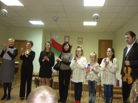 Праздничный концерт состоялся 13 марта в актовом зале территориального центра социальной защиты Первомайского района г.Минска. Наши друзья – музыкальный коллектив школы №115 – подготовили концертную программу, посвященную 8 марта. Перед многодетными мамами и их детками выступили дети и преподаватели школы с прекрасными вокальными и музыкальными номерами. Зрители услышали ансамбль “Весений экспромт”, песню “Мама” в исполнении Анны Спасибёнок, трио девочек с песней “А у гародзе”. “Мамино сердце” зазавучало на скрипке, а “Зорка Венера” на цимбалах.